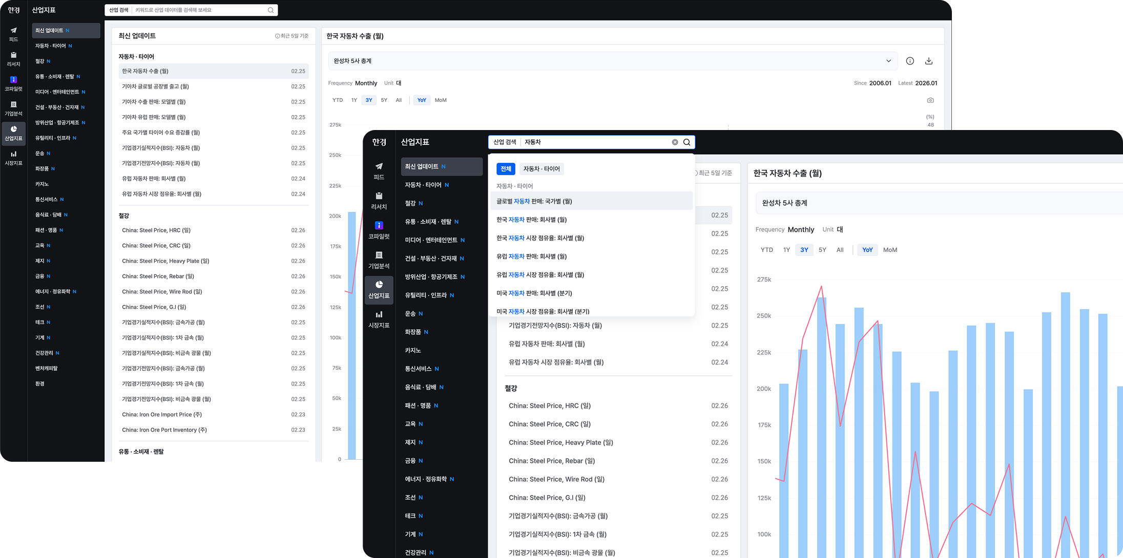 최신 업데이트된 지표는 따로 모아 제공하고, 키워드 검색으로 빠르게 찾을 수 있습니다.