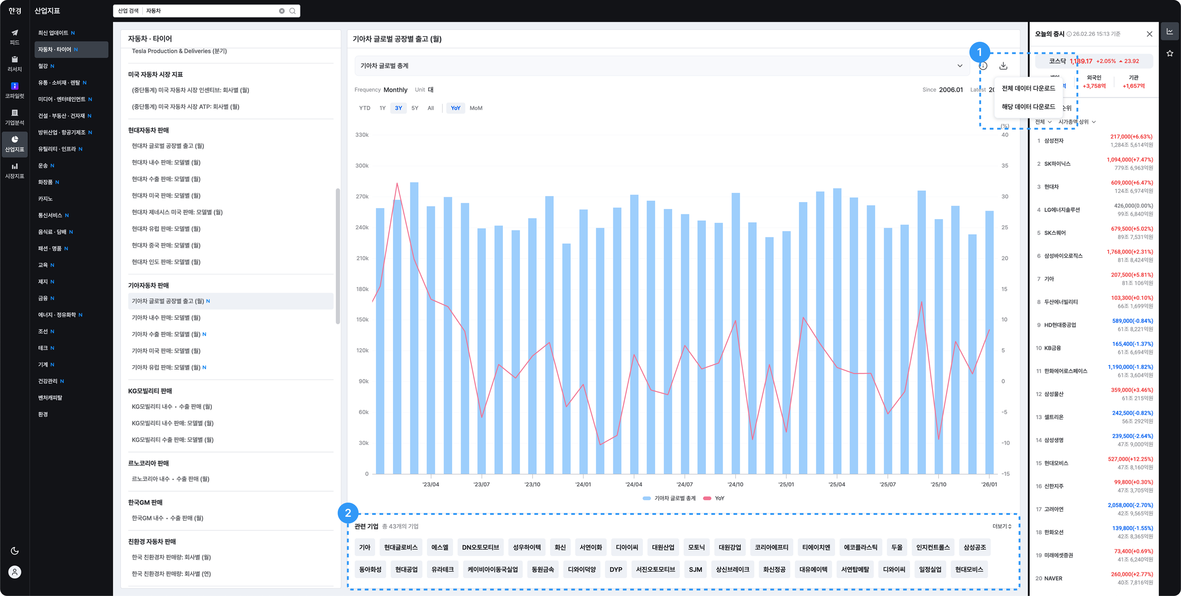 지표와 관련기업을 매핑하여 산업 흐름을 입체적으로 분석해보세요