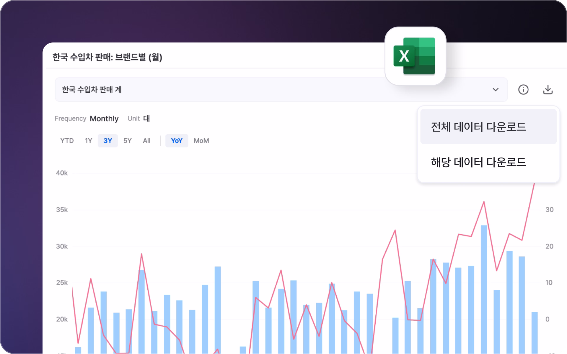 산업 지표 데이터를 엑셀로 다운로드해 다양한 분석에 활용할 수 있습니다